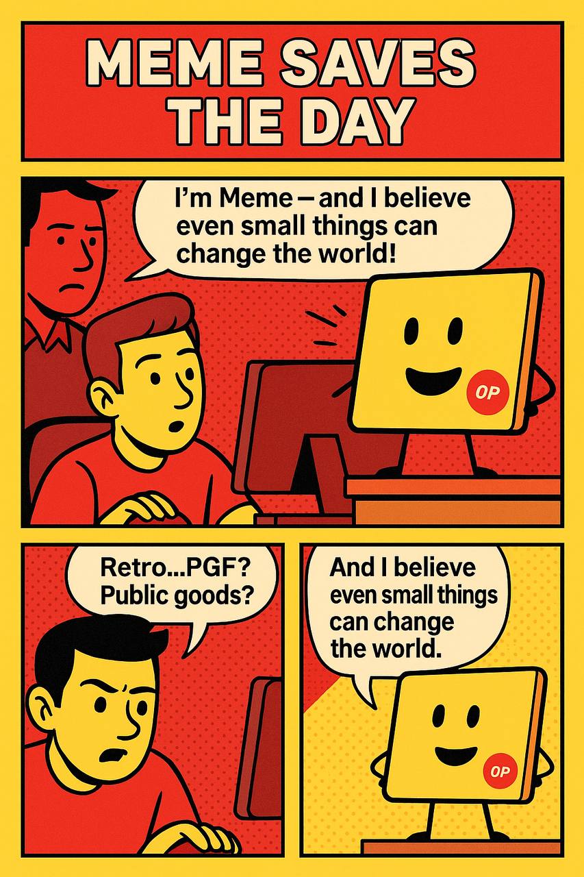 Meme Saves the Day — creative comics connecting memes, education, and optimism.