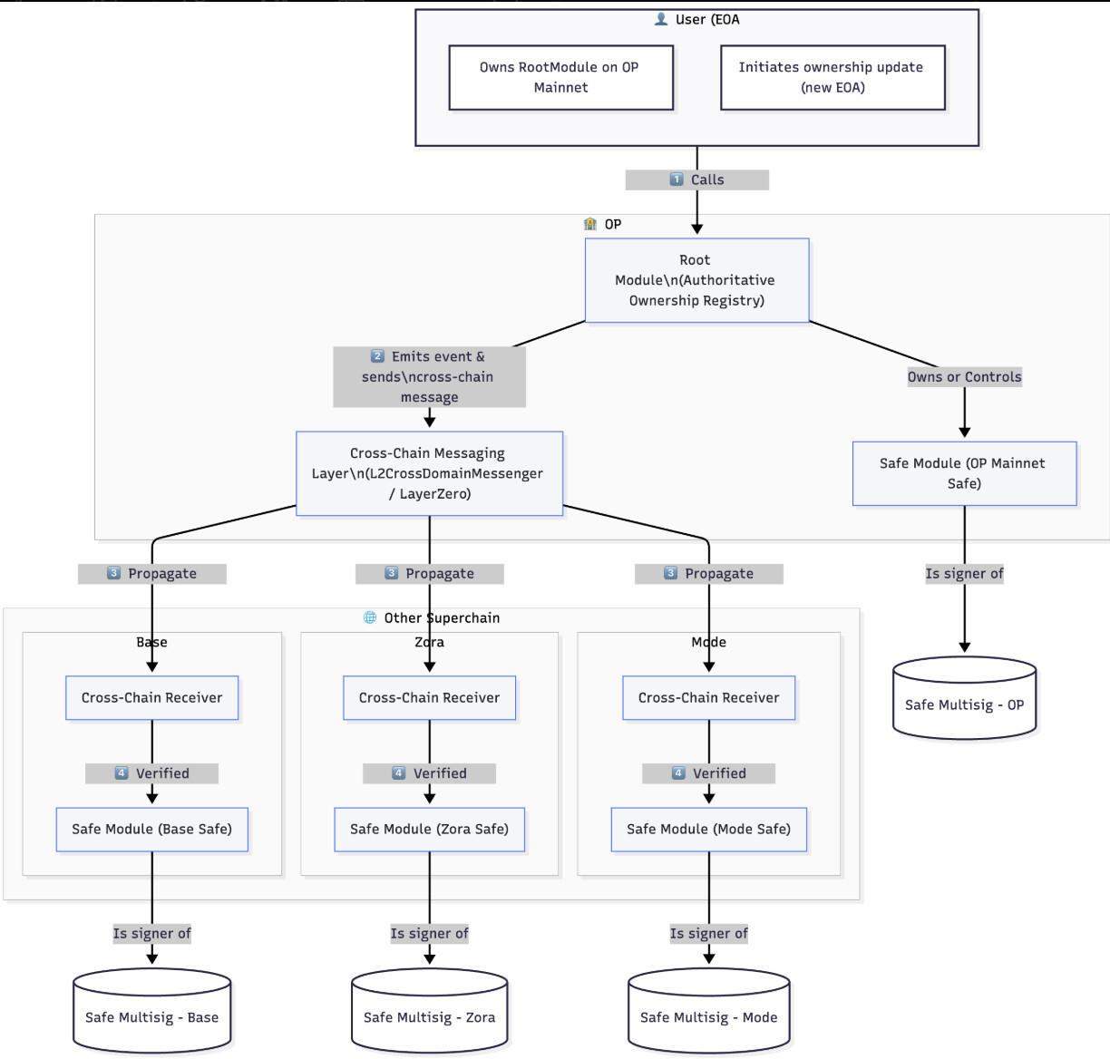 - Each Safe updates its local signer list, maintaining consistency with the RootModule state across the entire Superchain.